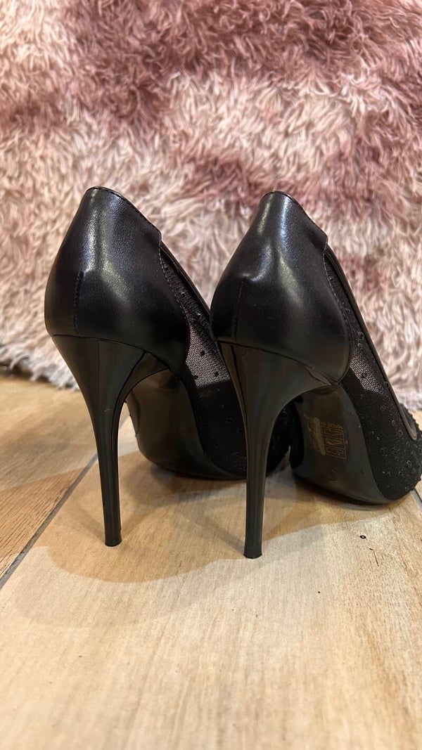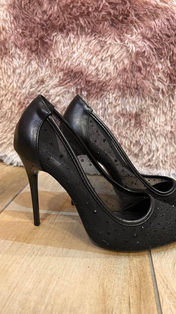 Décolleté gioiello in satin nero con tacco a spillo
