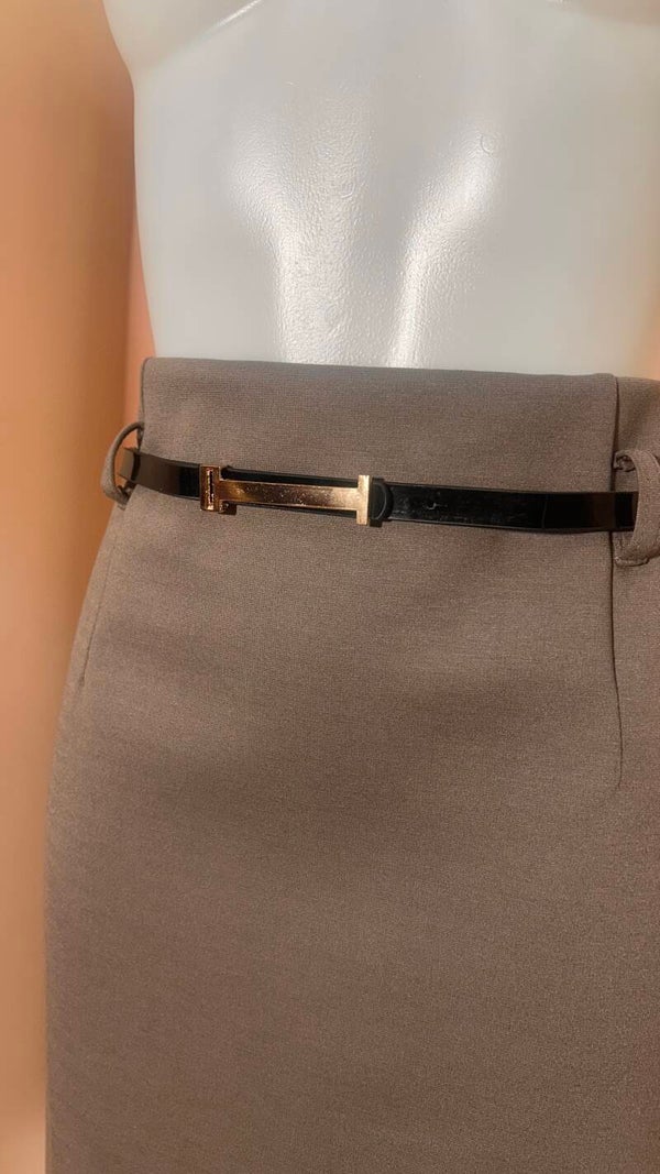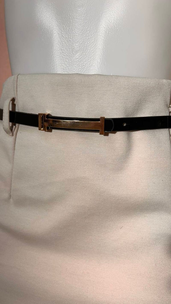 cintura regolabile il ecopelle nera e fibbia dorata