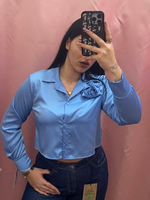Camicia crop con rosa