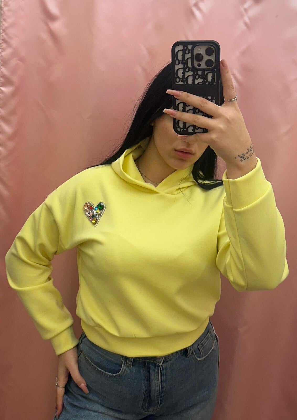 Felpa basic girovita e polsini elasticizzato con svarowski a forma di cuore