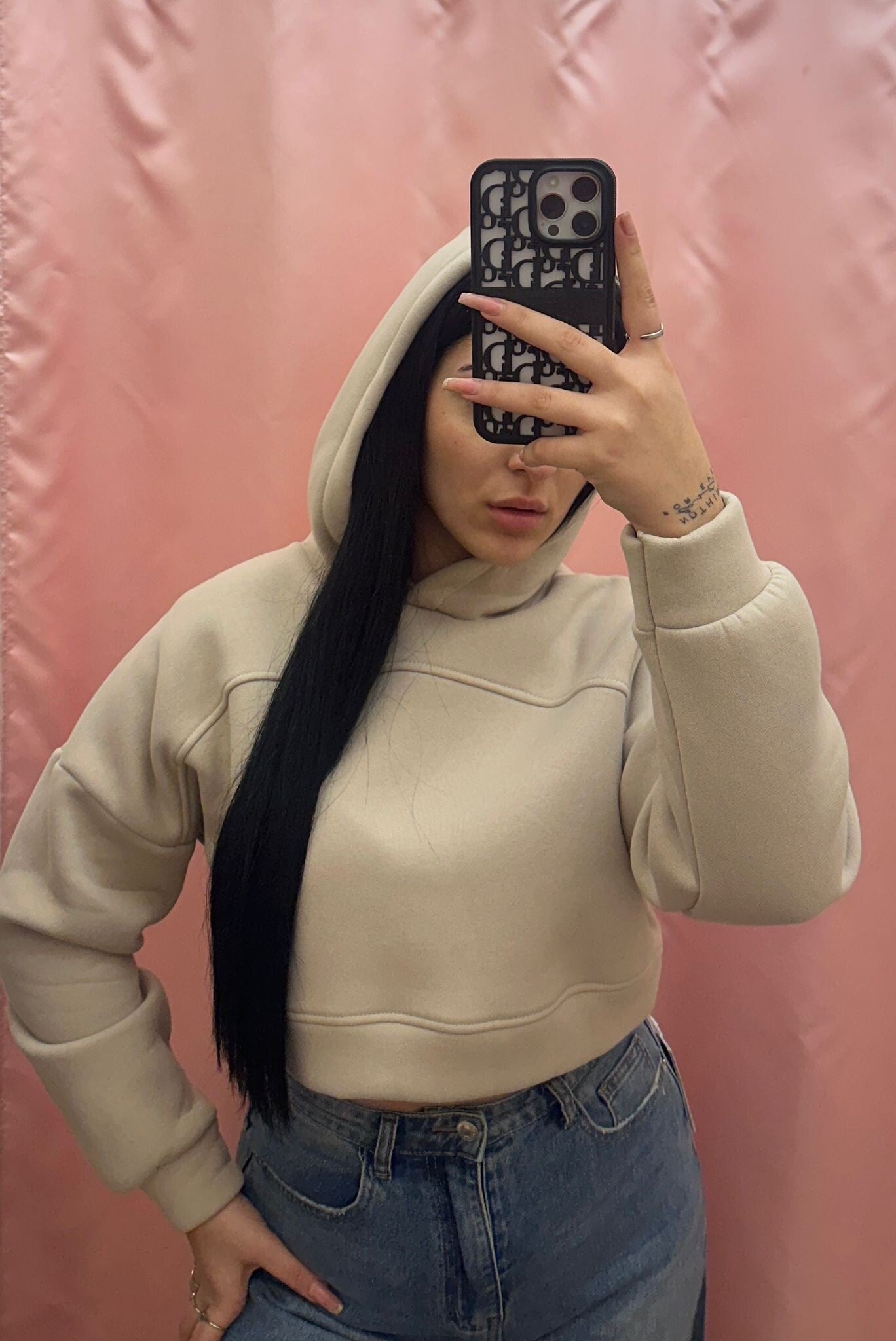 Felpa hoddie stile crop con cappuccio