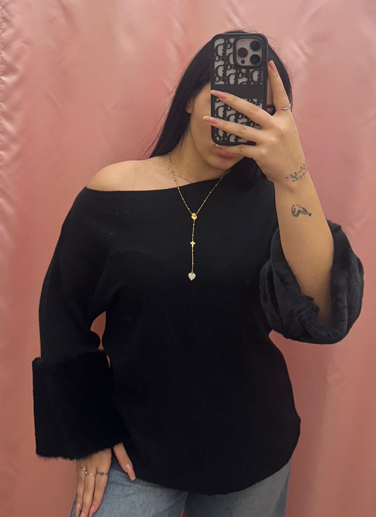 Maglioncino cozy con scollo a barchetta e maniche a campana con inserti in pelliccia