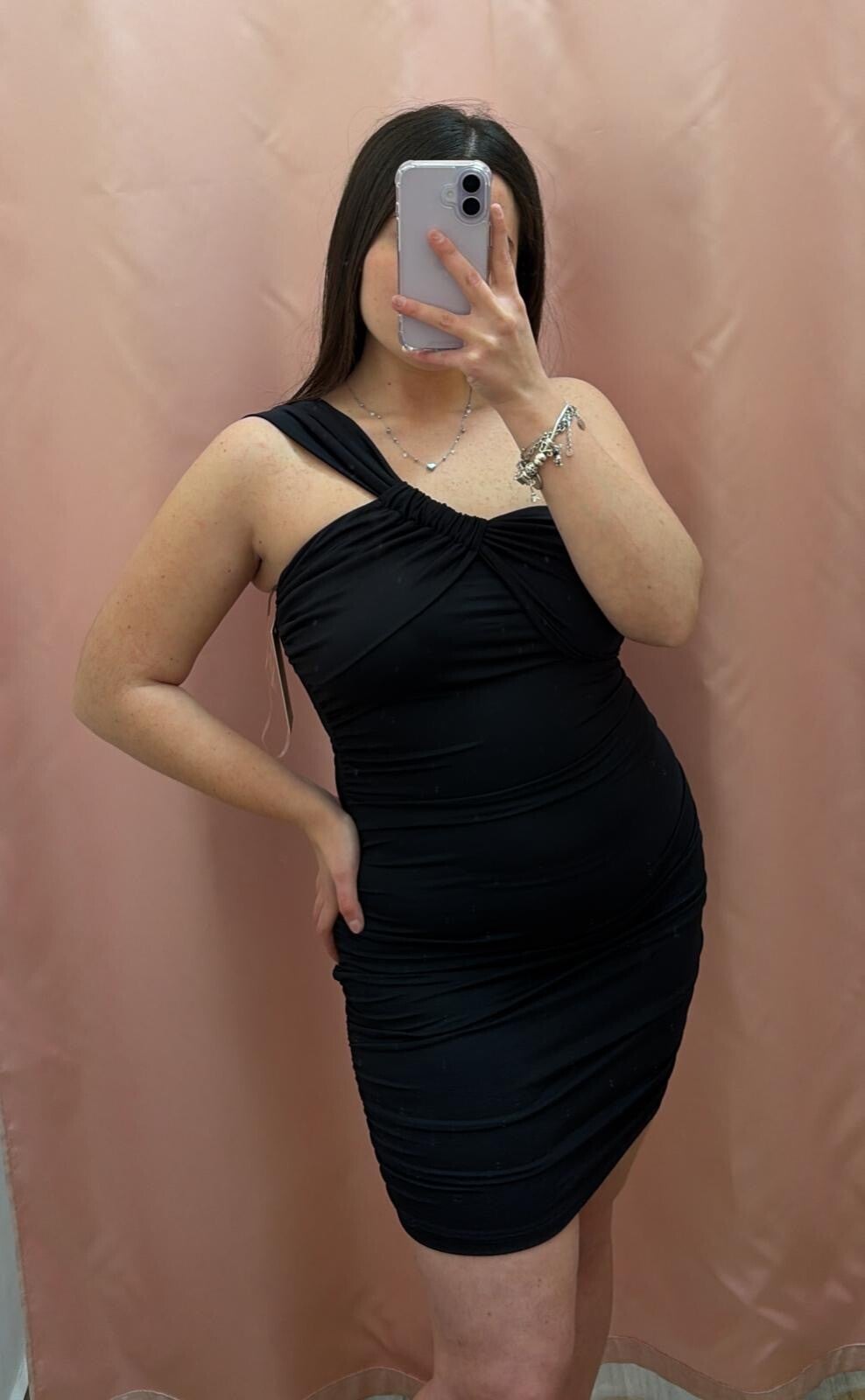 Vestitino con Scollo asimmetrico, dettaglio arricciato sul davanti ad effetto monospalla